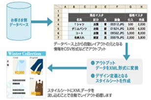 カタログやマニュアル、約款、物件情報、商品情報などの印刷物を、お客様のデータベースから完全自動化で紙面作成する自動レイアウトサービスです。